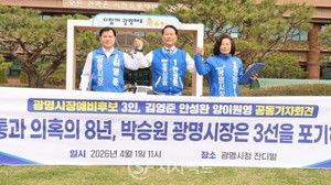더불어민주당 김영준, 안성환, 양이원영 등 세명의 광명시장 예비후보들 지난 4월 1일 오전, ‘불통과 의혹의 8년, 박승원 광명시장은 3선을 포기하라,는 제목의 공동 기자회견을 진행했다이에 대해 박승원 시장은 ‘광명시민의 성장을 모독하지 마십시오’라는 제목의 반박글을 본인 페이스북에 올렸다.3명의 예비후보들은 성장을 모독하지 말라니, 우리가 언제 광명시를 비난했는가?라고 반문하며 박승원 시장에 대한 의혹을 해명하고 불통행정을 지적한 것이라고 강조했다.이어 박승원 시장은 본인이 곧 광명시인 것처럼 말하고 있다. ‘짐이 곧 국가’라는